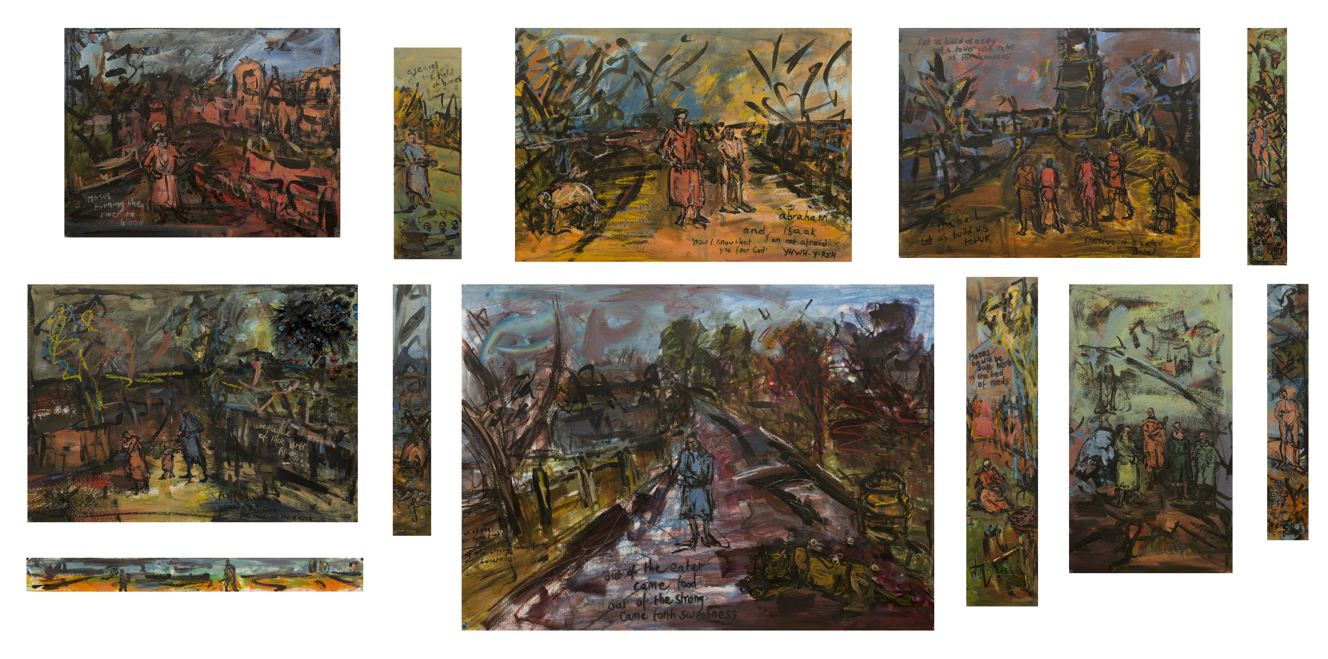 A series of twelve mixed media paintings depicting stories from the Old Testament. These paintings can be joined to form a contemporary altarpiece or shown individually.